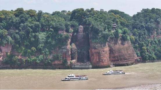 乐山,坐拥峨眉山-乐山大佛世界文化与自然双重遗产,岷江、大渡河、青衣江在此汇流,自古便是山水奇观与航运文化的交融之地。在唐代,工匠依山凿刻乐山大佛,守护过往船只。如今,这座千年大佛静静凝视着重型设备在“东电号”上装载启航,也见证着自然山水与工业文明的对话交流。
