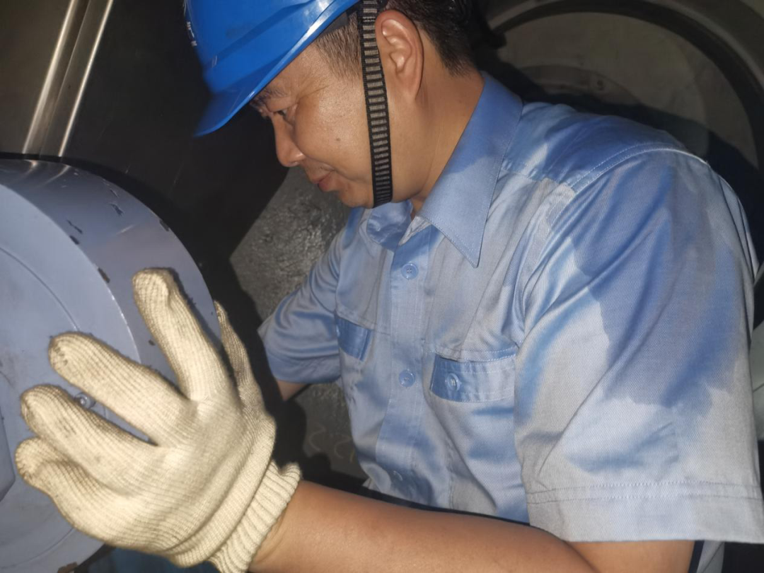 ◆尊龙时凯人生就搏锅炉重容车间职工在对汽包筒身内壁环缝批磨